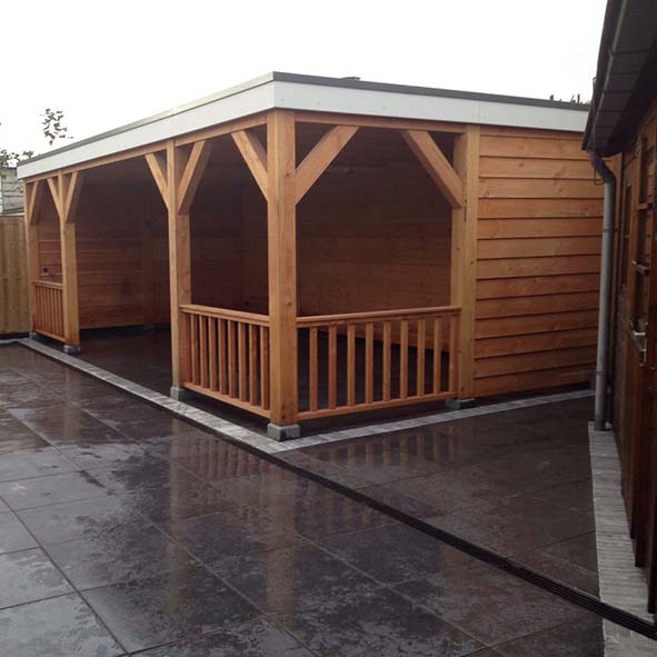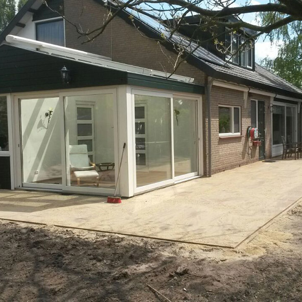 Aanbrengen tegels t.b.v. een nieuw terras, tevens grondwerk verzorgd t.b.v. uitbouw woning